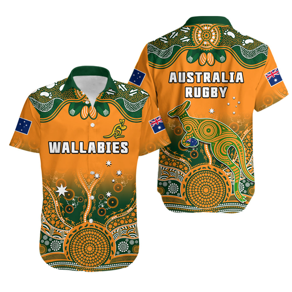 Australia Rugby Hawaiian Shirt Wallabies Kangaroo Orange Aboriginal LT14