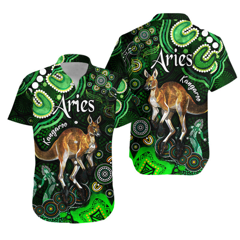 Australian Astrology Hawaiian Shirt Aries Kangaroo Zodiac Aboriginal Vibes - Green LT8