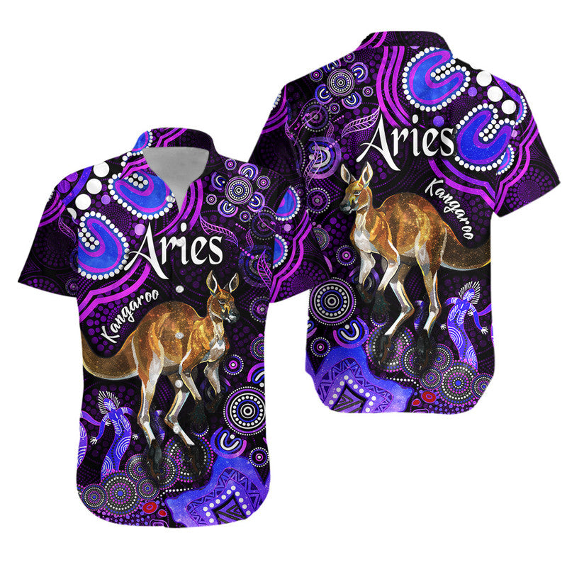 Australian Astrology Hawaiian Shirt Aries Kangaroo Zodiac Aboriginal Vibes - Purple LT8