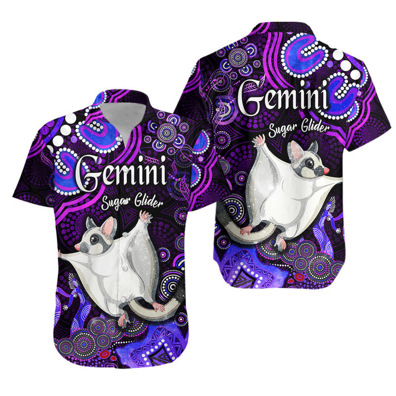 Australian Astrology Hawaiian Shirt Gemini Sugar Glider Zodiac Aboriginal Vibes - Purple LT8