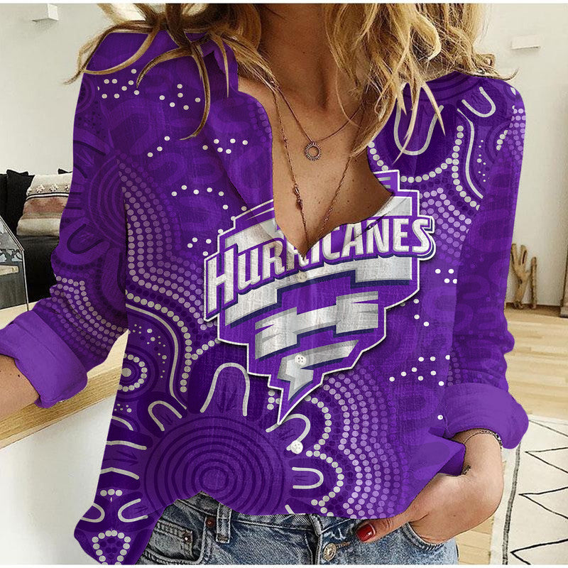(Custom Personalised And Number) Hurricanes Cricket Casual Shirt Aboriginal Purple LT6