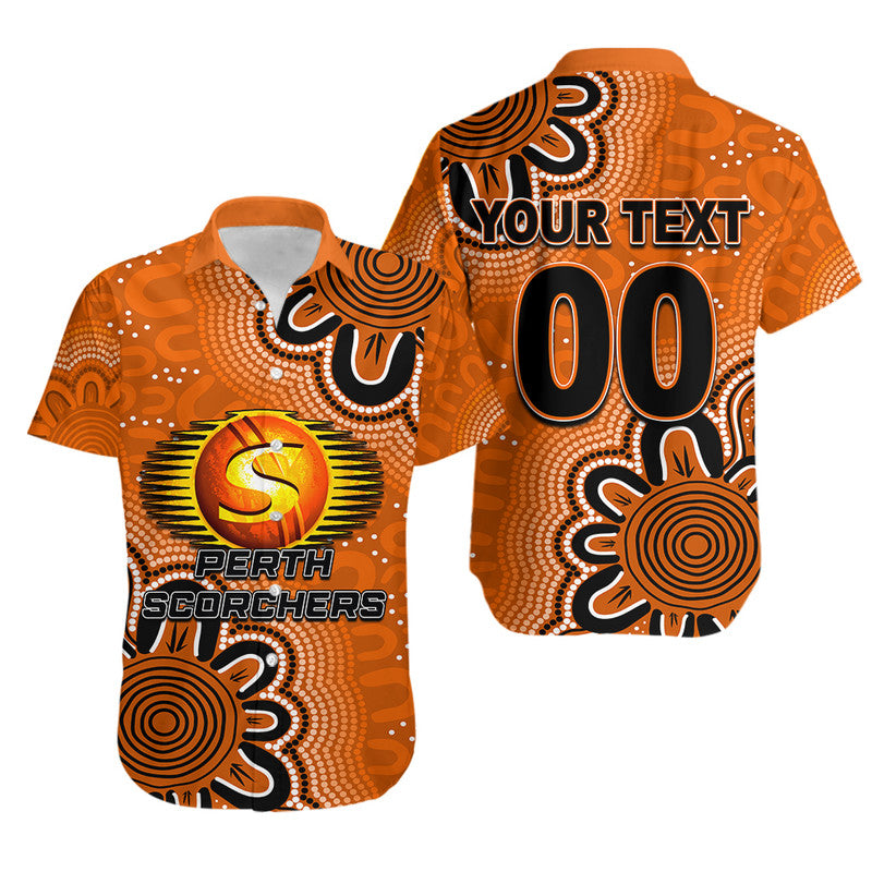 (Custom Personalised And Number) Scorchers Cricket Hawaiian Shirt Aboriginal Orange LT6