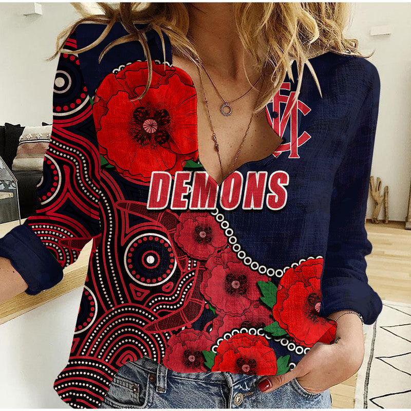 (Custom Personalised) Anzac Day AFL-Demons Army Mix Aboriginal Women Casual Shirt LT6