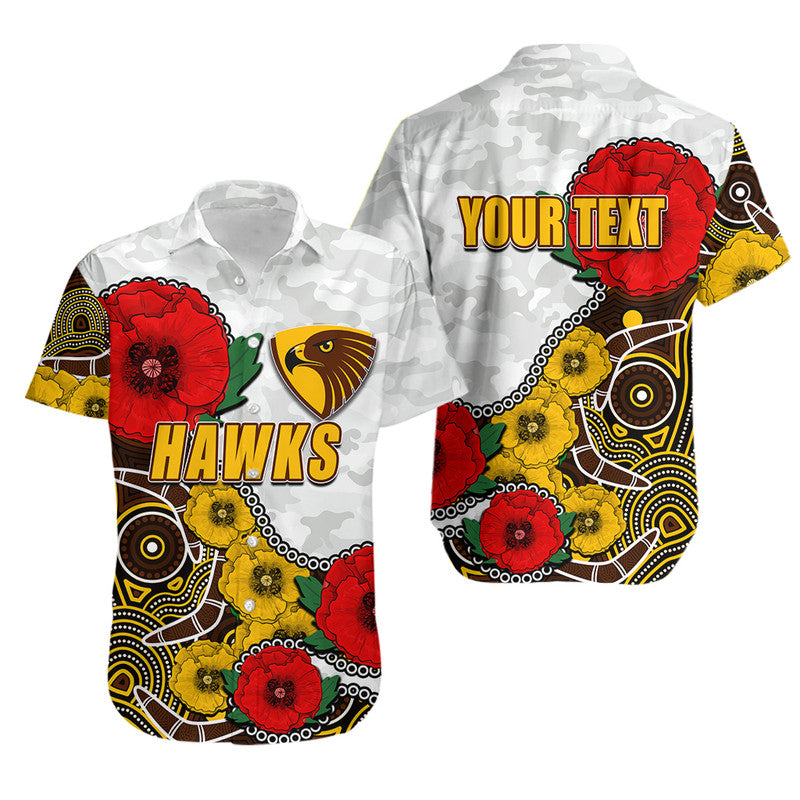 (Custom Personalised) Anzac Day AFL-Hawks Army Mix Aboriginal Hawaiian Shirt LT6