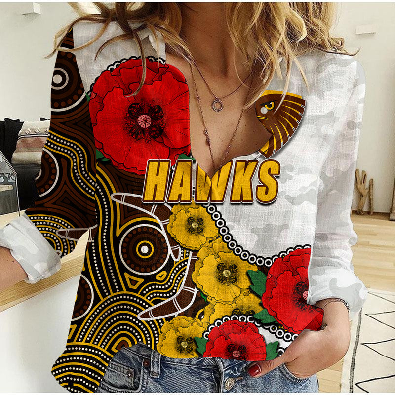 (Custom Personalised) Anzac Day AFL-Hawks Army Mix Aboriginal Women Casual Shirt LT6