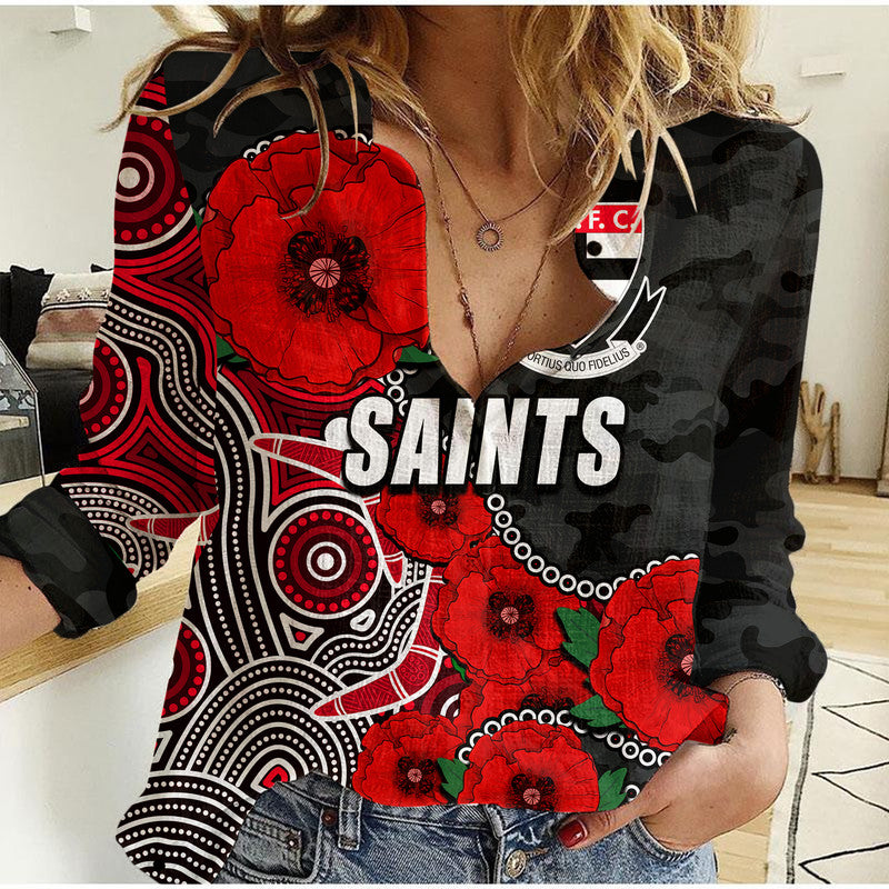 (Custom Personalised) Anzac Day AFL-Saints Army Mix Aboriginal Women Casual Shirt LT6