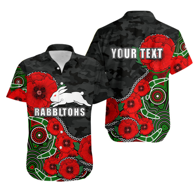 (Custom Personalised) Anzac Day NRL-Rabbitohs Army Mix Aboriginal Hawaiian Shirt No.2 LT6