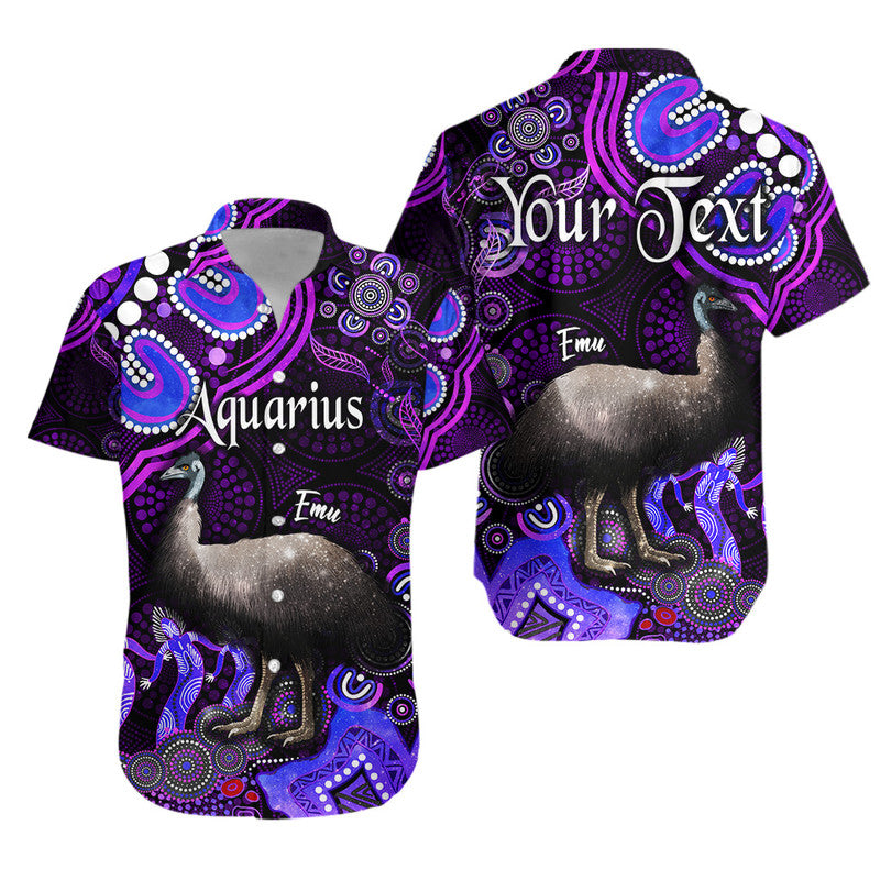 (Custom Personalised) Australian Astrology Hawaiian Shirt Aquarius Emu Glider Zodiac Aboriginal Vibes - Purple LT8