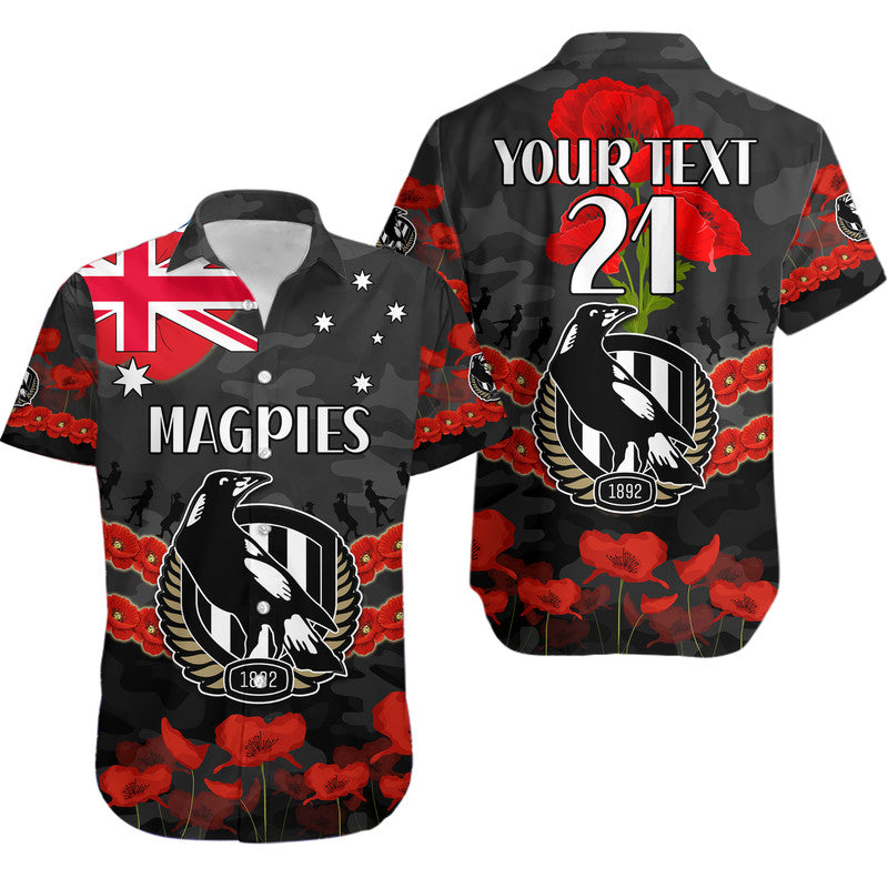 (Custom Personalised) Magpies Football ANZAC Hawaiian Shirt Lest We Forget LT9