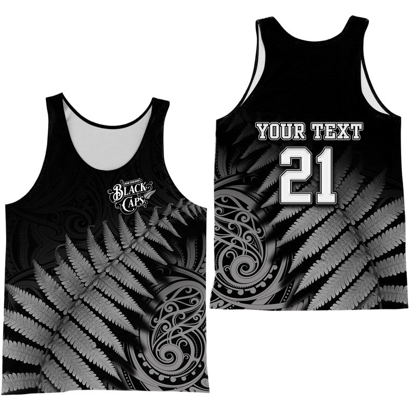 (Custom Personalised) New Zealand Kiwis Cricket Team Men Tank Top Black Caps Silver Fern Mixed Maori Pattern Version Black LT9