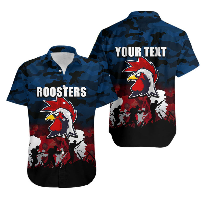 (Custom Personalised) NRL Anzac Day Hawaiian Shirt Roosters Army Style LT6