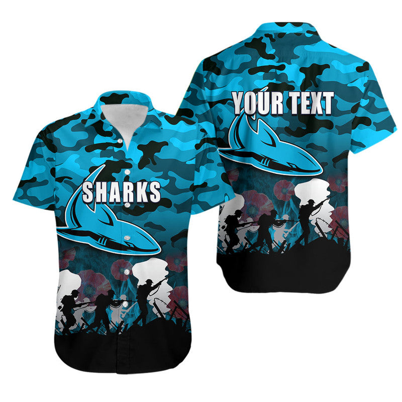 (Custom Personalised) NRL Anzac Day Hawaiian Shirt Sharks Army Style LT6