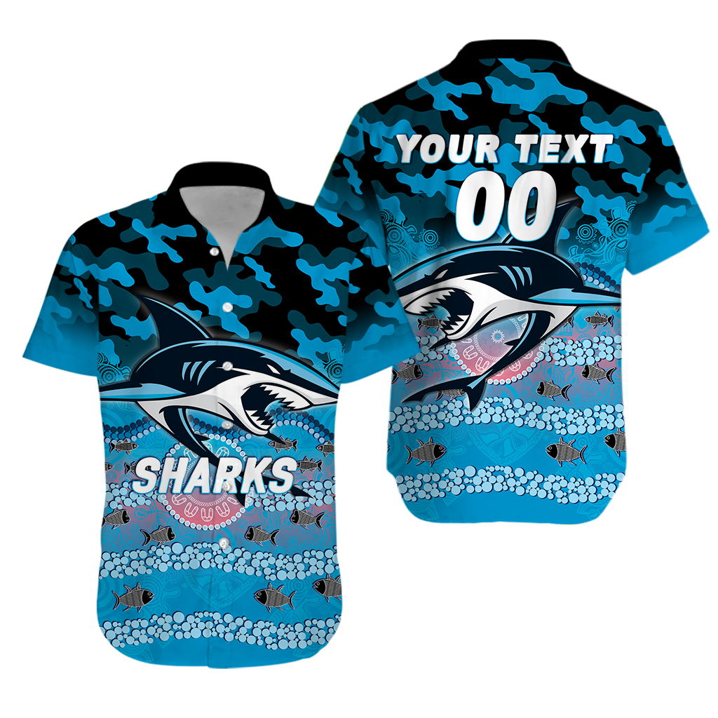 (Custom Personalised) Sharks Rugby ANZAC Day Camouflage Indigenous Art Hawaiian Shirt - LT12