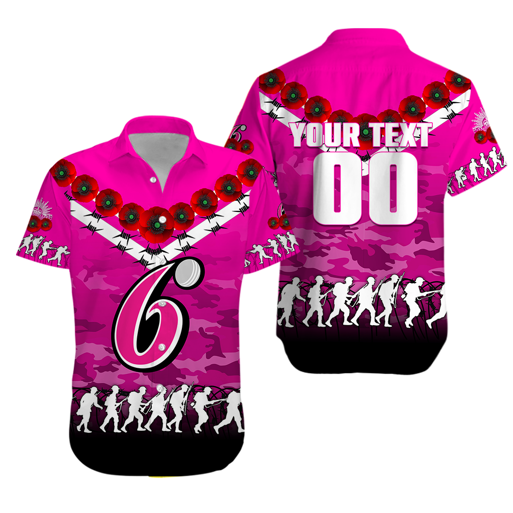 (Custom Personalised) Sydney Sixers ANZAC 2022 Hawaiian Shirt Camouflage With Poppy - LT12
