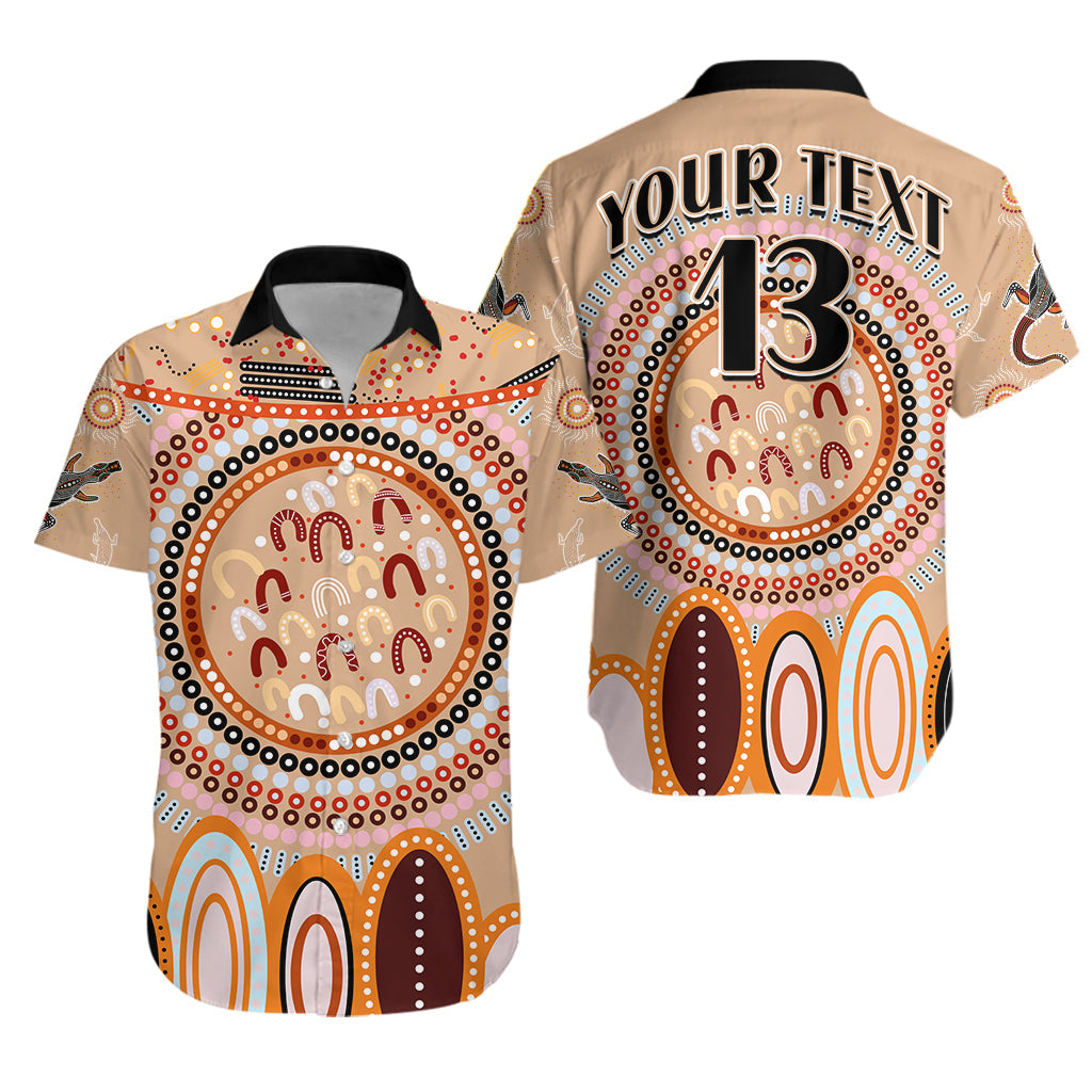 (Custom Text and Number) Aboriginal Stand Up Hawaiian Shirt Circle Dot with Lizard Version PeachPuff LT13