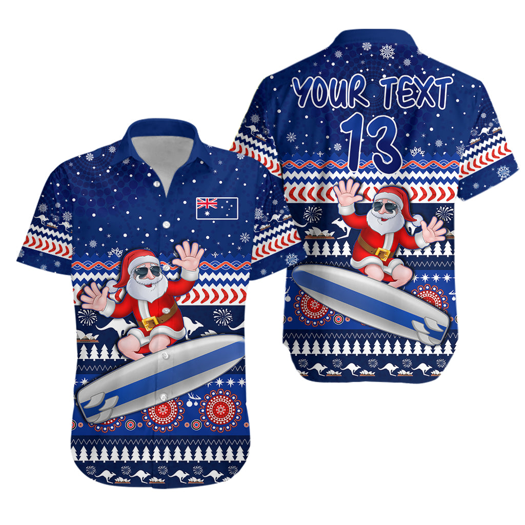 (Custom Text and Number) Australia Christmas Hawaiian Shirt Aussie Aboriginal Santa Claus is Surfing with Kangaroo LT13
