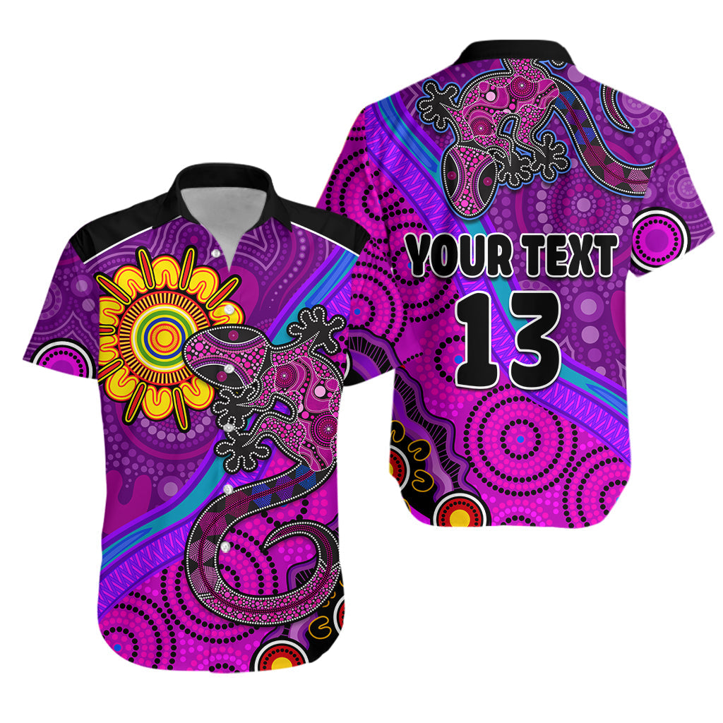 (Custom Text and Number) Australia Lizard and Sun Hawaiian Shirt Aboriginal Art Purple LT13