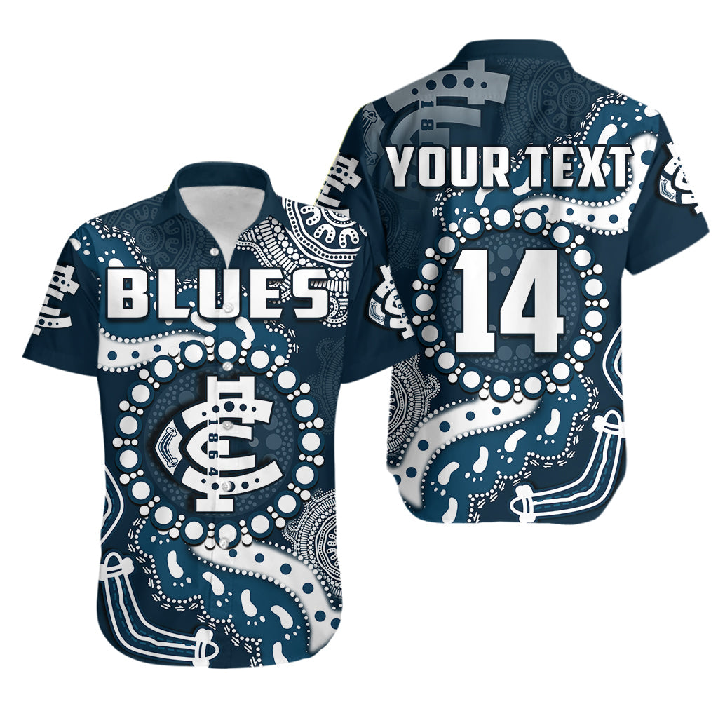 (Custom Text And Number) Carlton Football Hawaiian Shirt Blues 1864 Boomerang Indigenous Artsy LT14