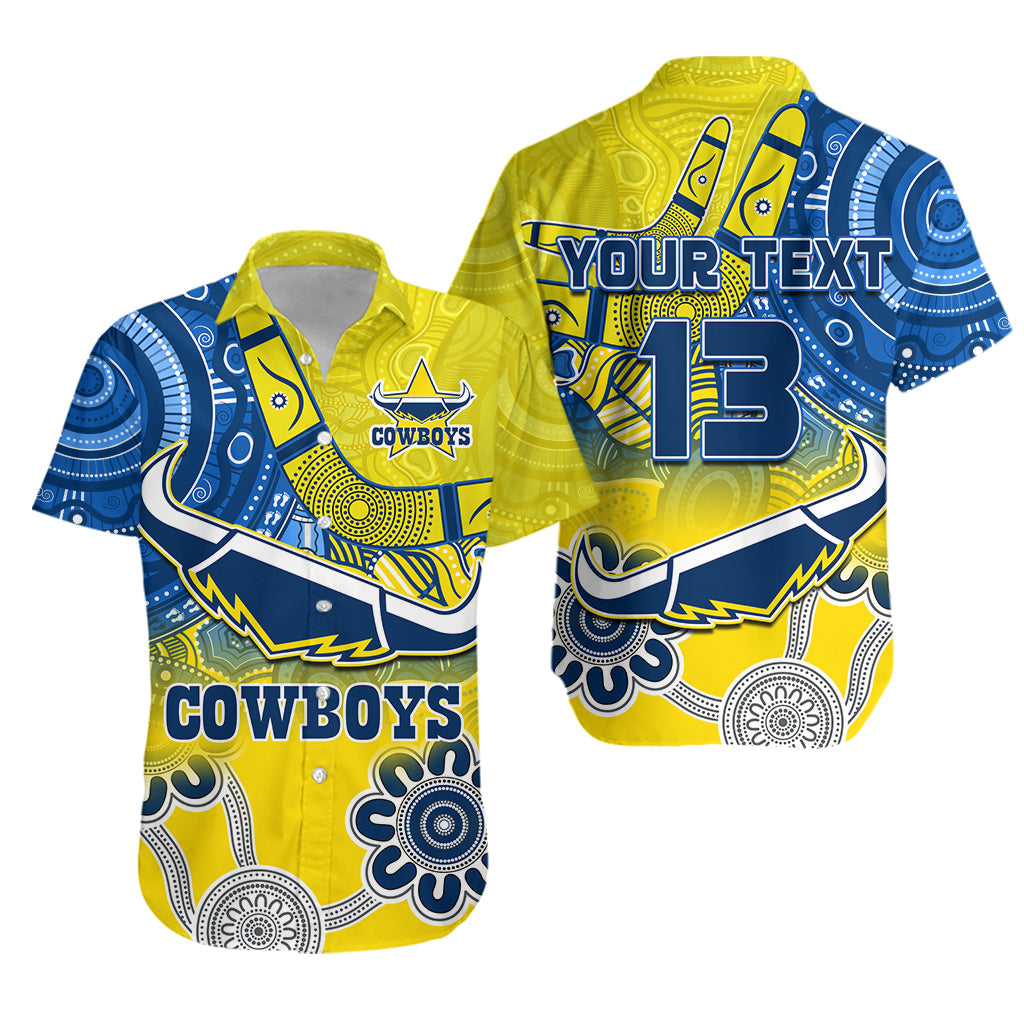 (Custom Text and Number) Cowboys Rugby Hawaiian Shirt Aboriginal Boomerang Go Premiers North Queensland LT13