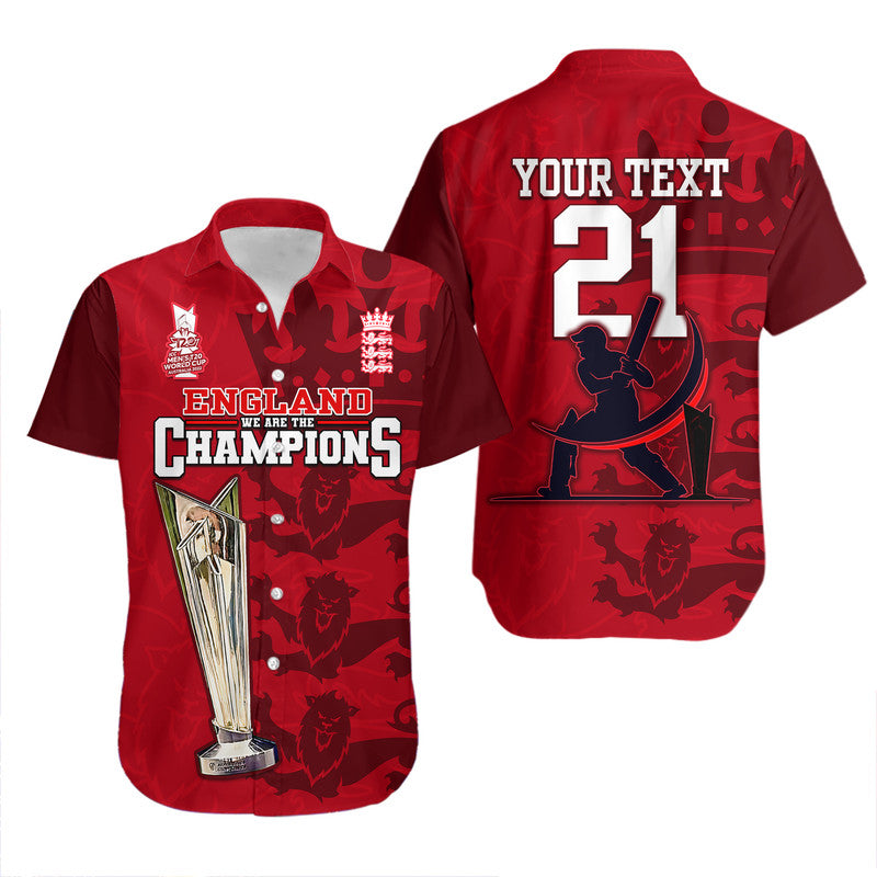 (Custom Text And Number) England Lions Cricket Champions Men's T20 World Cup 2022 Hawaiian Shirt LT9