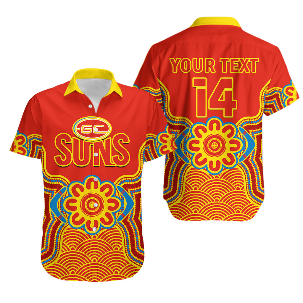 (Custom Text And Number) Gold Coast Football Hawaiian Shirt Suns Indigenous Pattern LT14