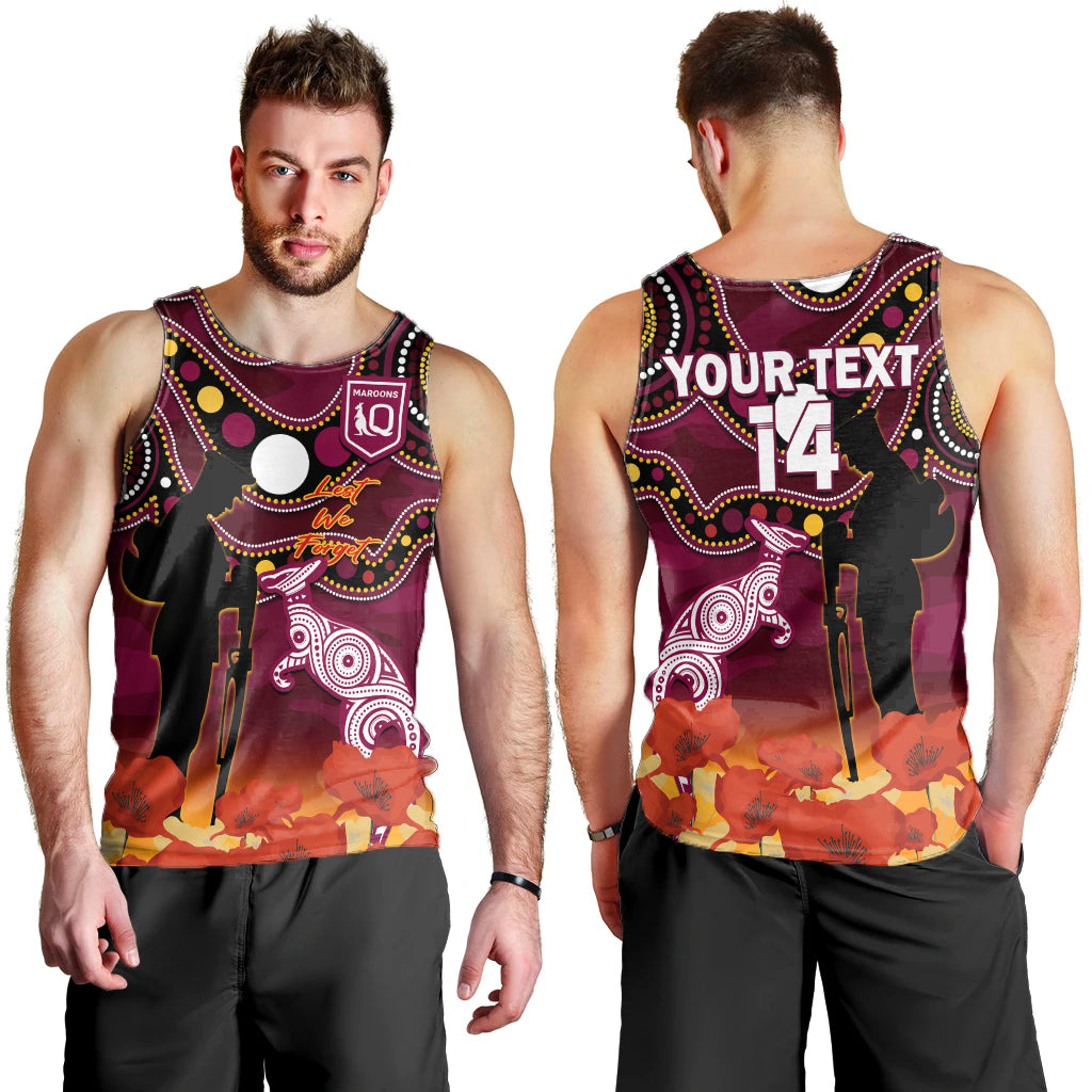 (Custom Text And Number) Maroons Rugby ANZAC 2023 Men Tank Top QLD Aboriginal Mix Poppy Camouflage LT14