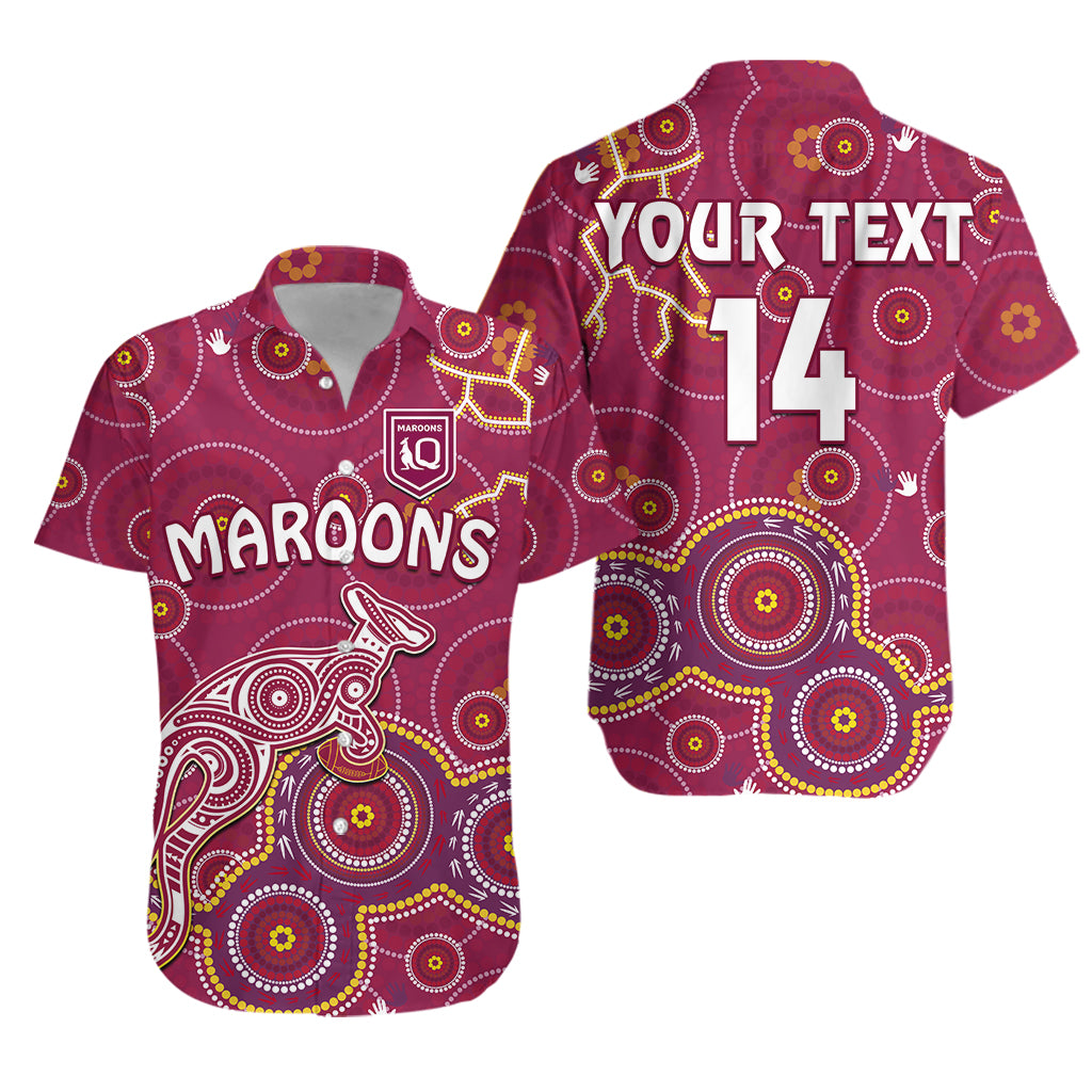(Custom Text And Number) Maroons Rugby Hawaiian Shirt Kangaroo Indigenous Pattern Unique Version LT14