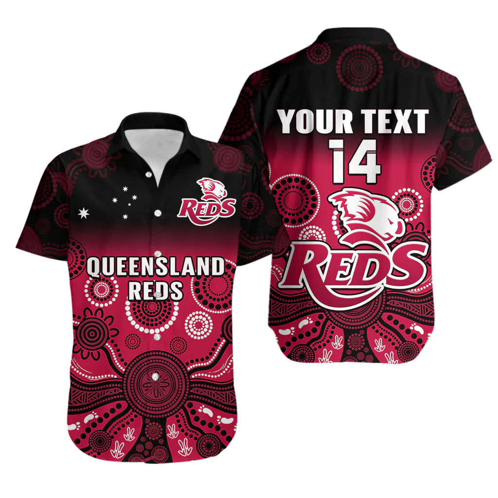 (Custom Text And Number) Queensland Reds Rugby Hawaiian Shirt Gradient Aboriginal LT14