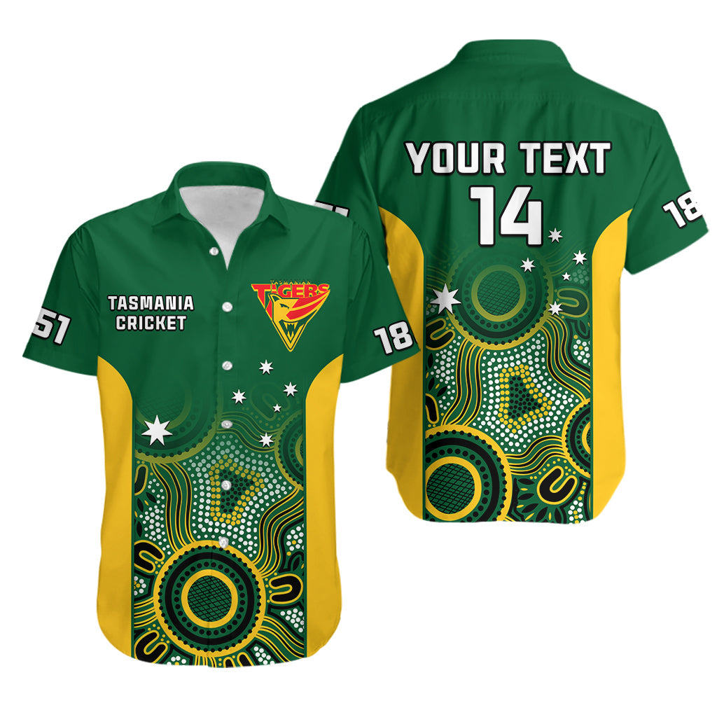 (Custom Text And Number) Tasmania Cricket 2023 Hawaiian Shirt Tigers Sheffield Shield Indigenous LT14