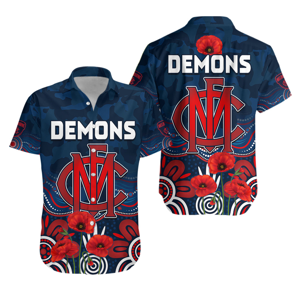 Demons ANZAC 2022 Hawaiian Shirt Melbourne Football Aboriginal Poppy LT13