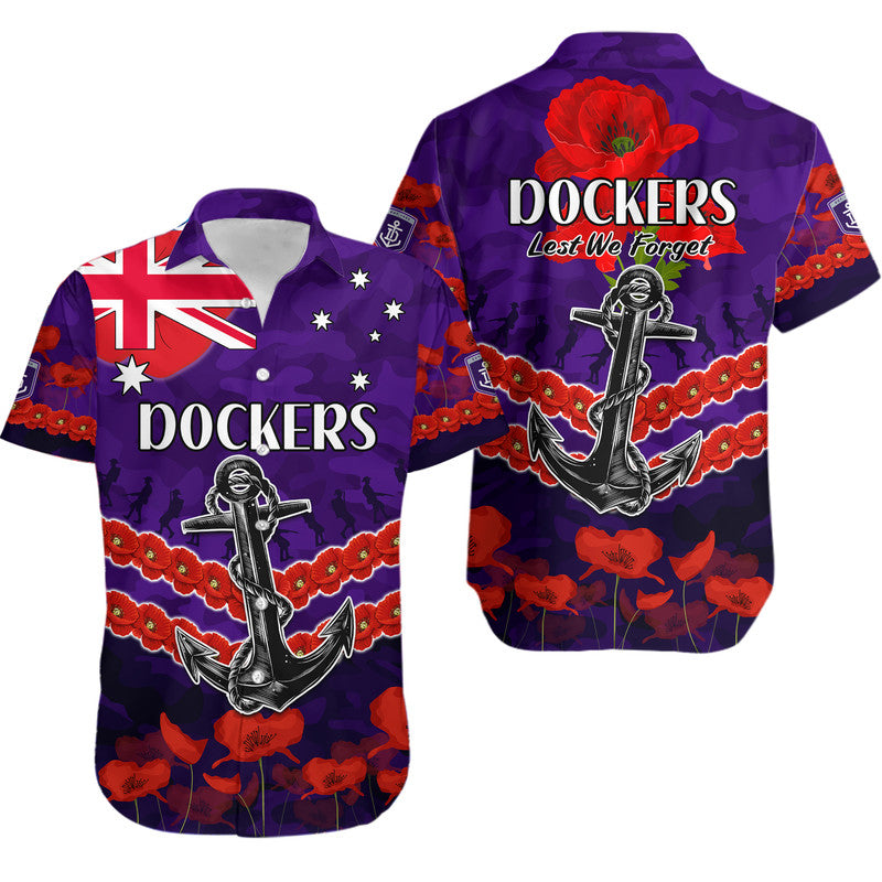 Dockers Football ANZAC Hawaiian Shirt Lest We Forget LT9