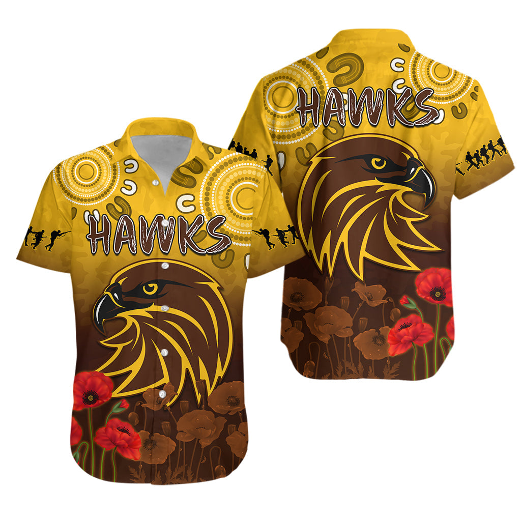 Hawks ANZAC 2022 Hawaiian Shirt Hawthorn Football Aboriginal Poppy LT13