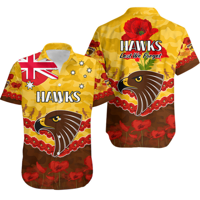 Hawks Football ANZAC Hawaiian Shirt Lest We Forget LT9