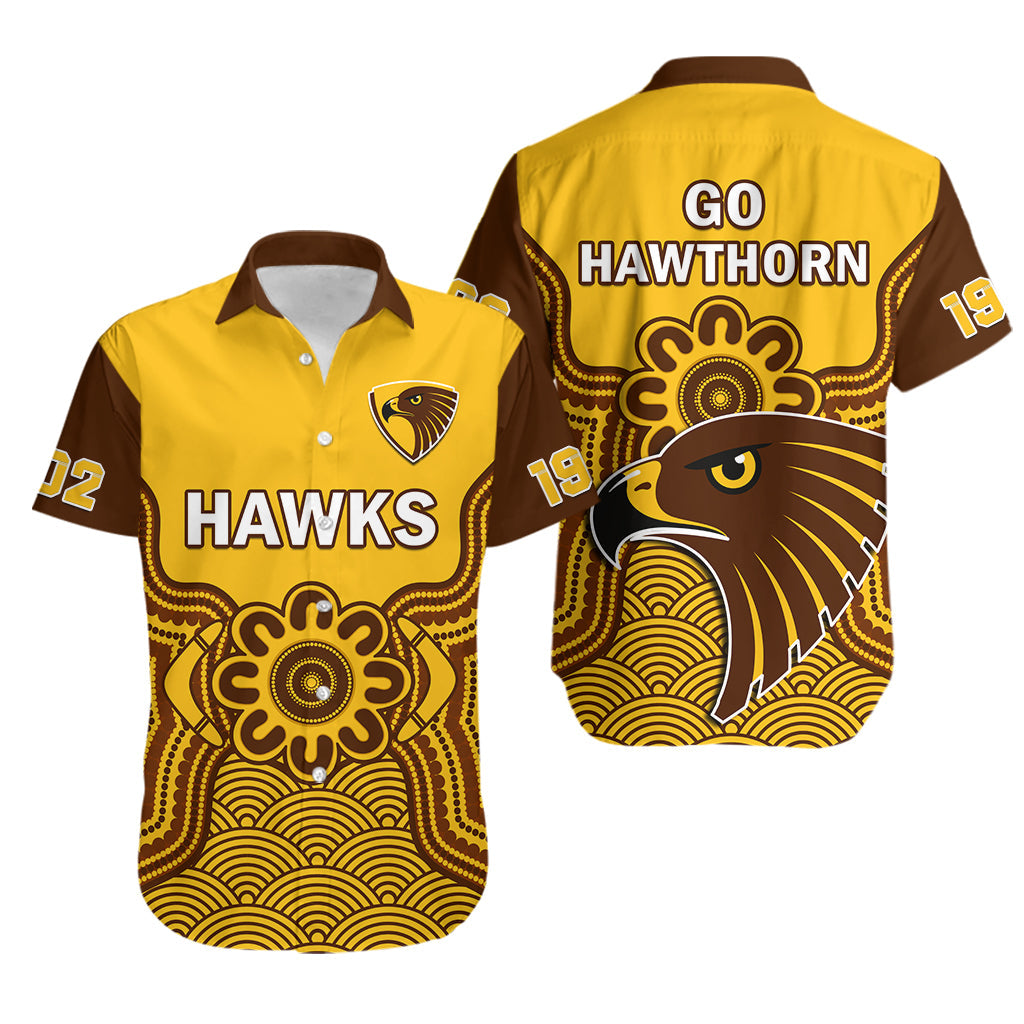 Hawthorn Football Hawaiian Shirt Go Hawks 1902 Aboriginal Art LT14