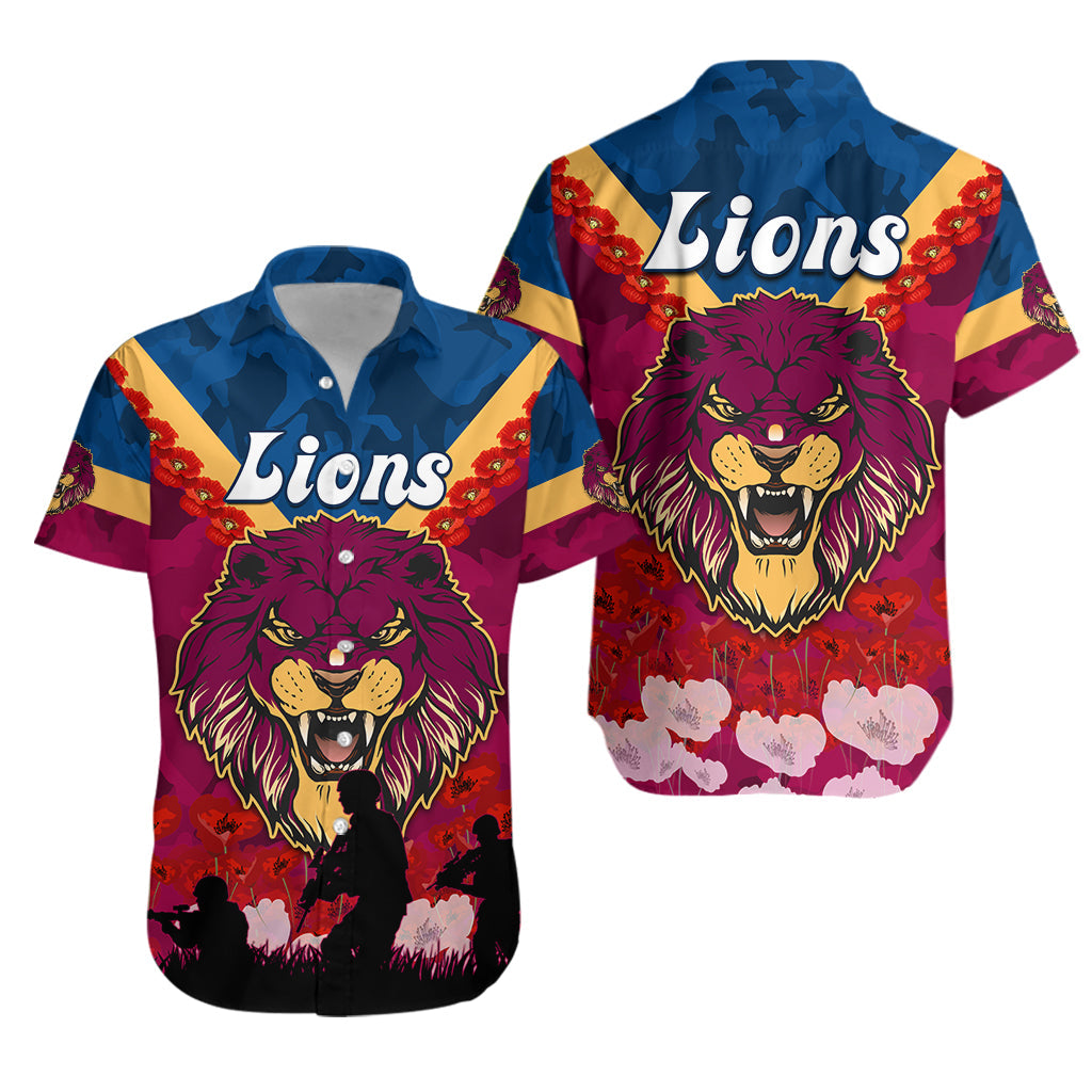 Lions ANZAC 2022 Hawaiian Shirt Brisbane Brissie Poppy Flowers LT13