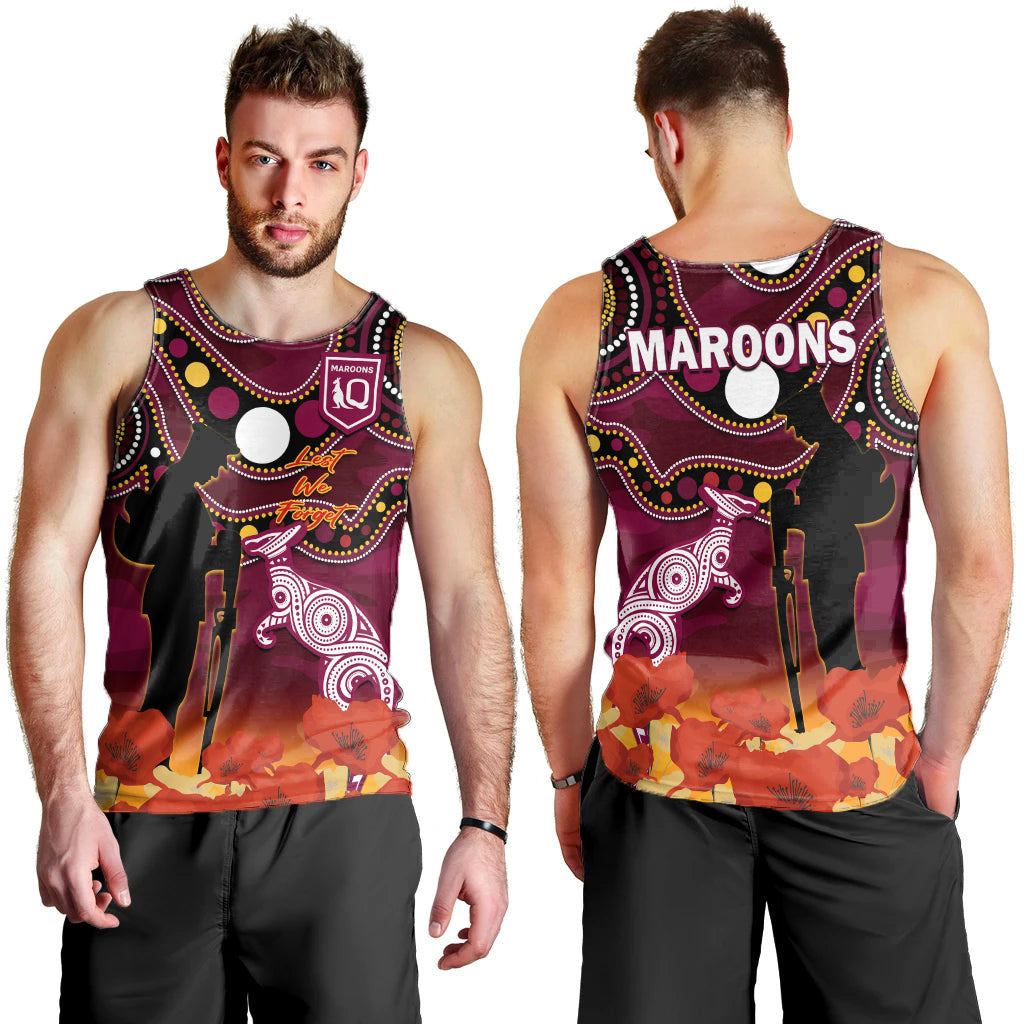 Maroons Rugby ANZAC 2023 Men Tank Top QLD Aboriginal Mix Poppy Camouflage LT14