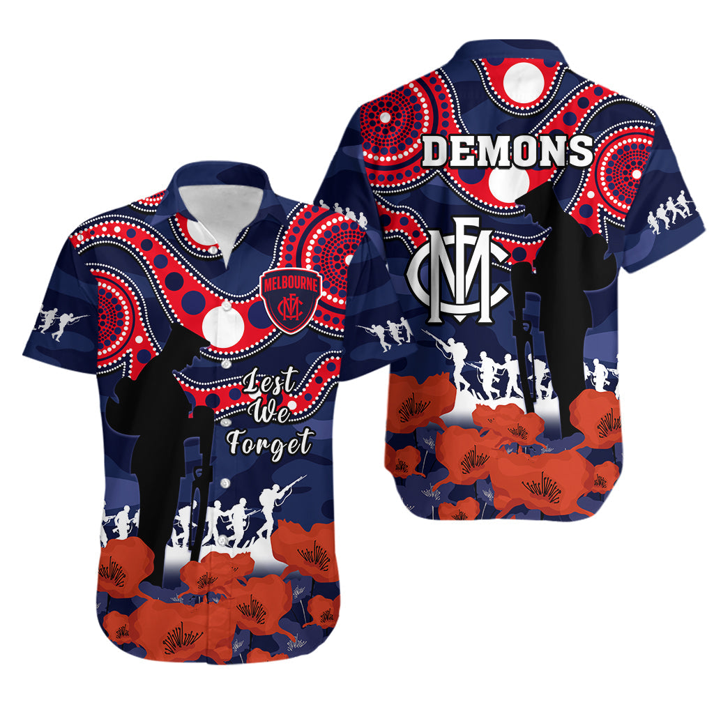 Melbourne Football ANZAC 2023 Hawaiian Shirt Demons Aboriginal Mix Poppy Camouflage LT14
