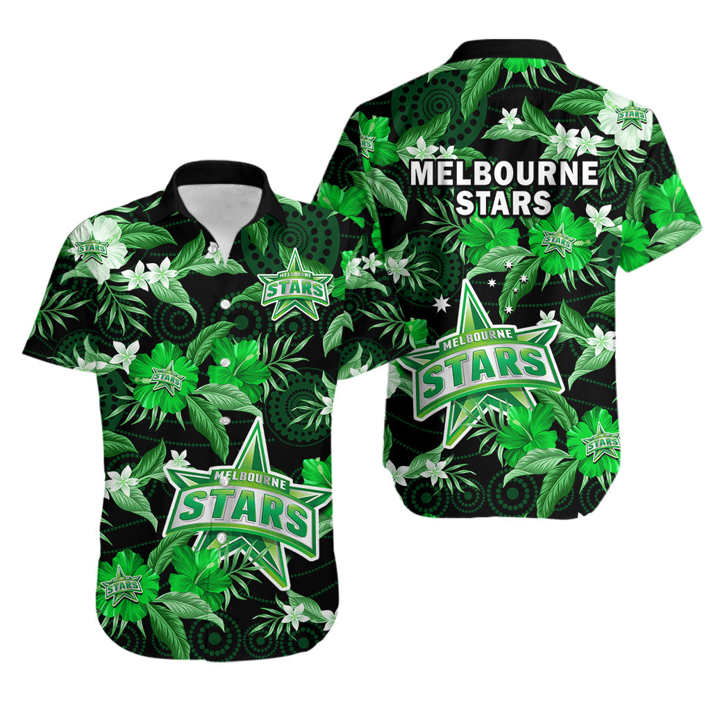 Melbourne Stars Cricket Hawaiian Shirt Aboriginal Art Mix Tropical Flowers LT14