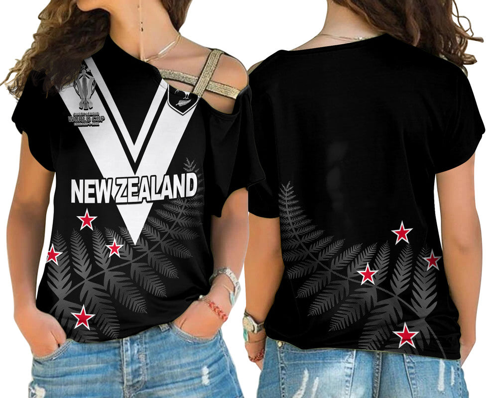 New Zealand Kiwi Ferns Rugby Cross Shoulder Shirt Women World Cup 2022 LT6