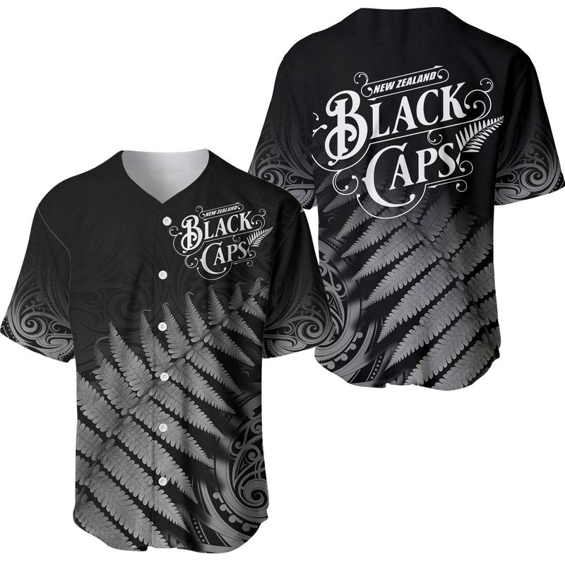 New Zealand Kiwis Cricket Team Baseball Jersey Black Caps Silver Fern Mixed Maori Pattern Version Black LT9