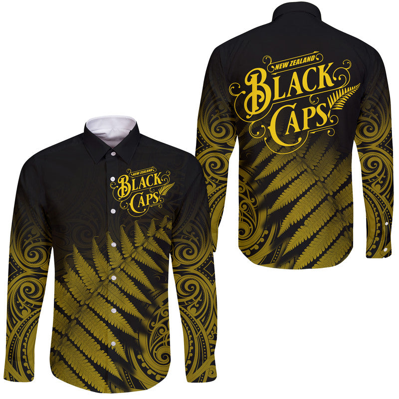 New Zealand Kiwis Cricket Team Hawaii Long Sleeve Button Shirt Black Caps Silver Fern Mixed Maori Pattern Version Gold LT9