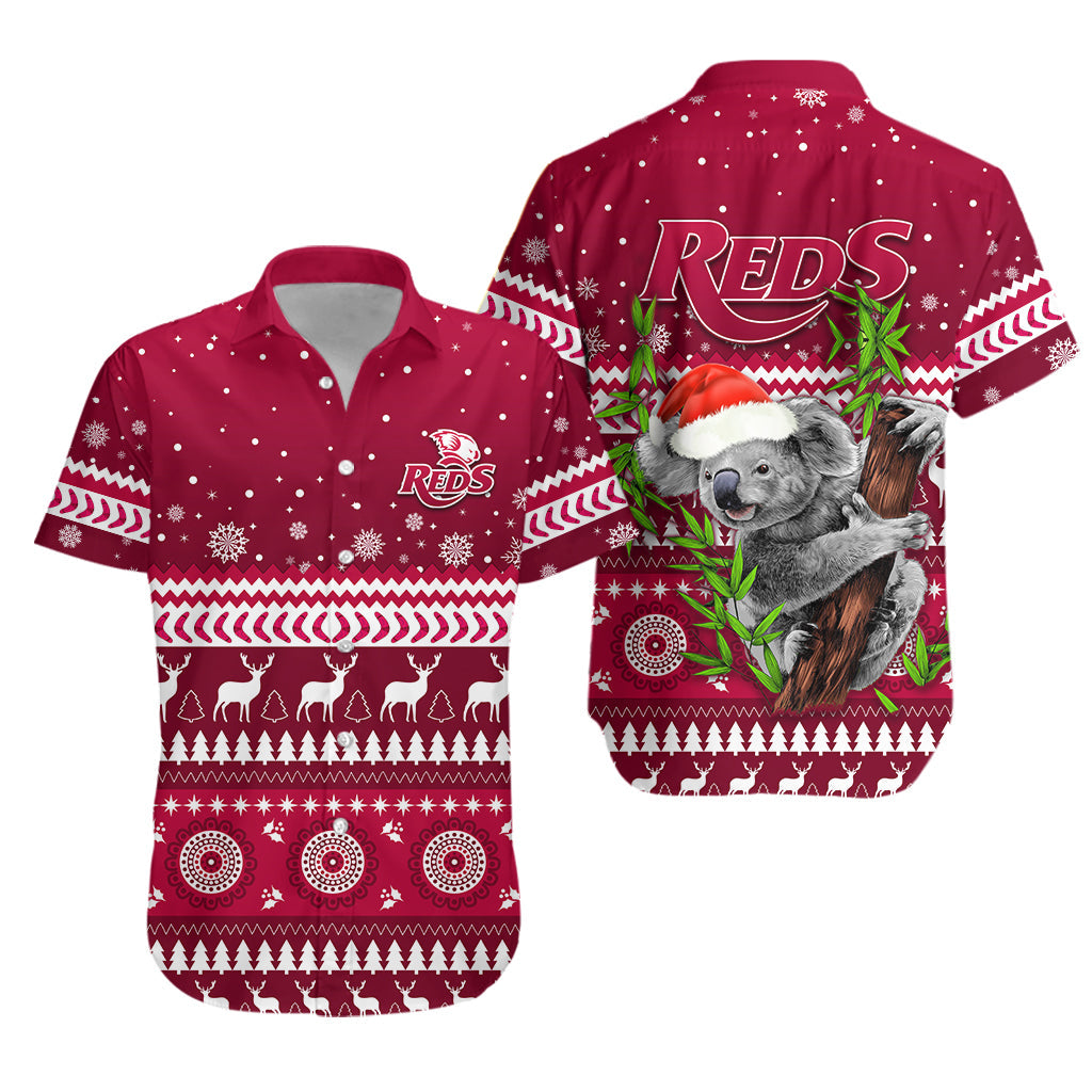 Reds Christmas Hawaiian Shirt Queensland Rugby Indigenous LT13