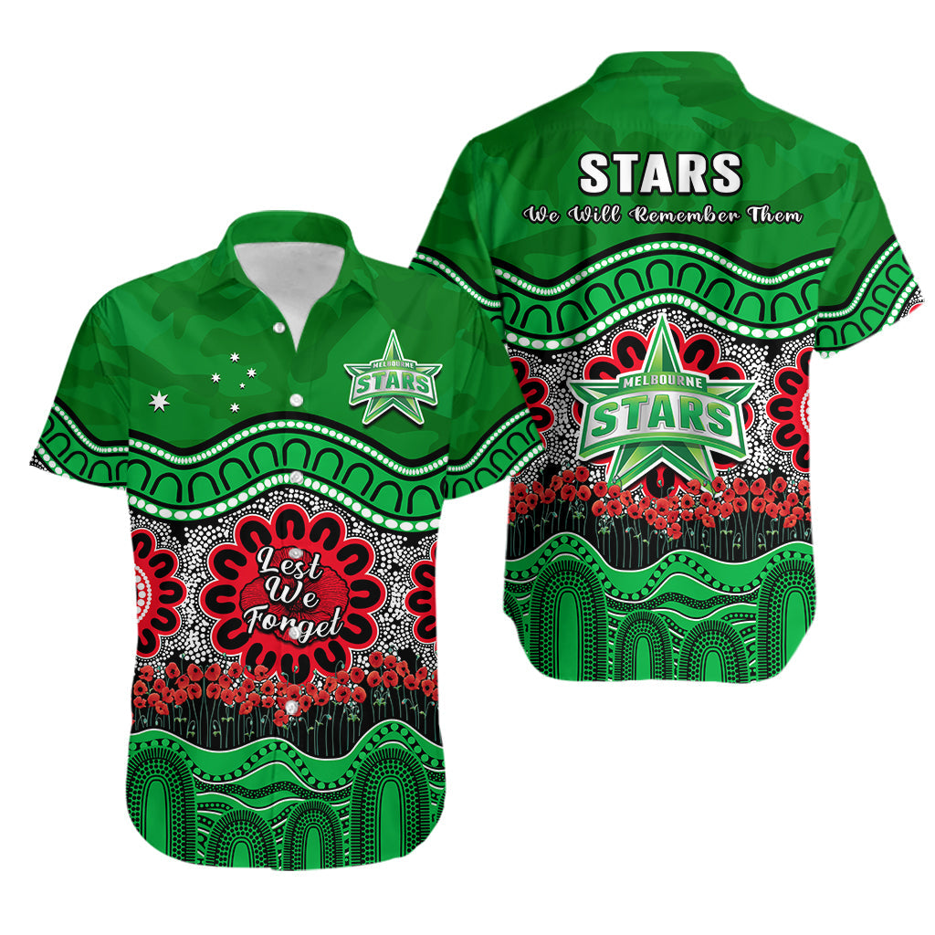 Stars Cricket ANZAC Hawaiian Shirt Melbourne Poppy Aboriginal Camouflage LT14