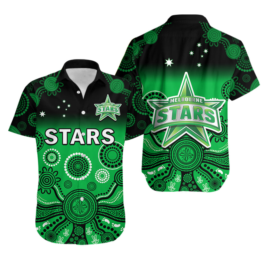 Stars Cricket Hawaiian Shirt Melbourne Team Green Gradient Aboriginal Art LT14