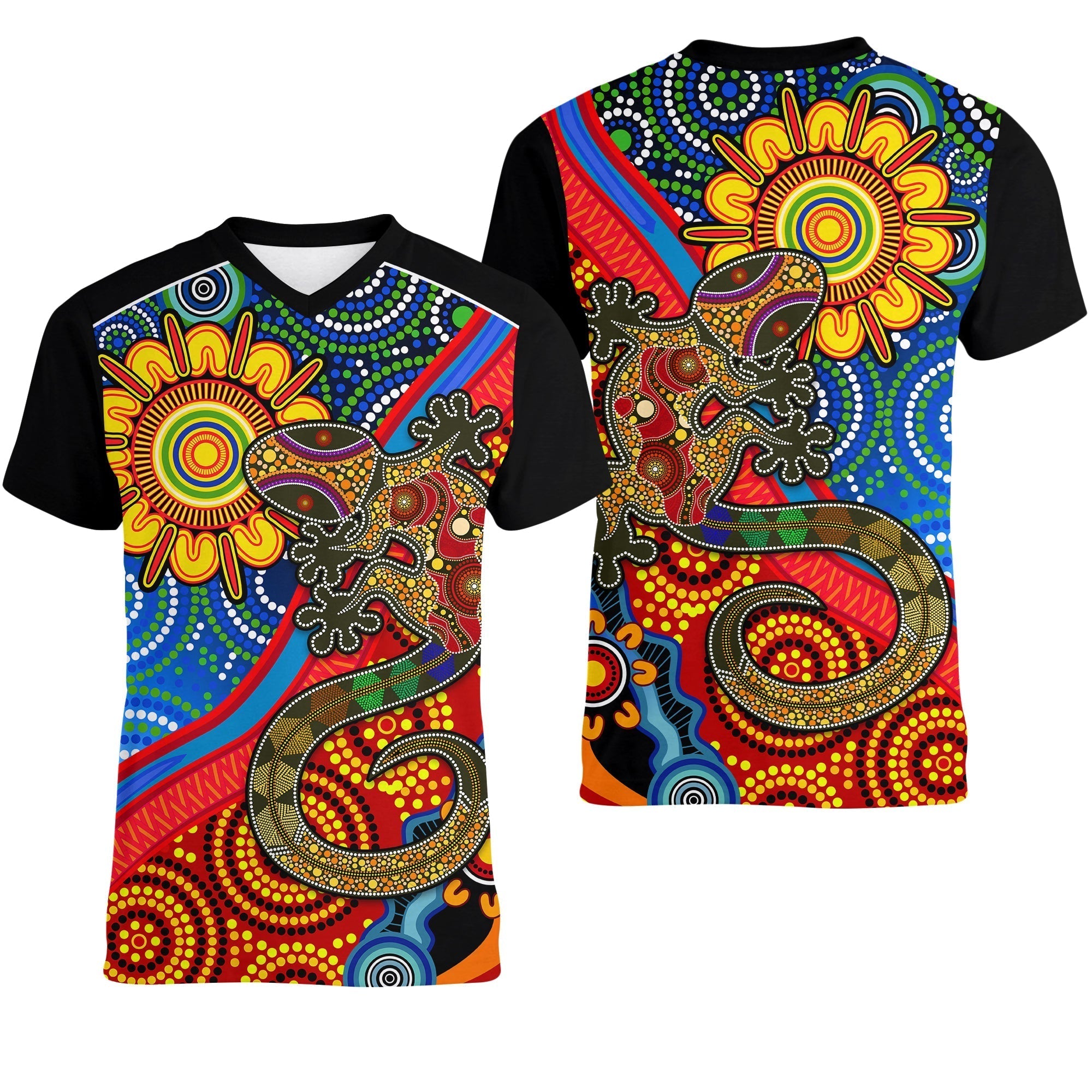 Australia Lizard and Sun V - Neck T shirt Aboriginal Art Speical LT13