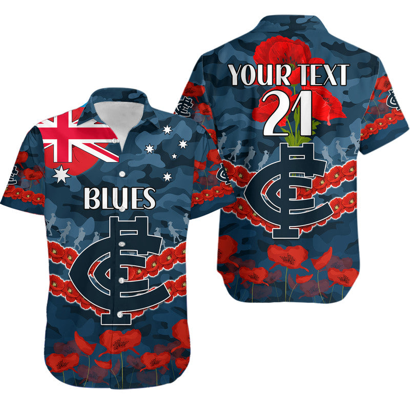 (Custom Personalised) Blues Football ANZAC Hawaiian Shirt Lest We Forget LT9