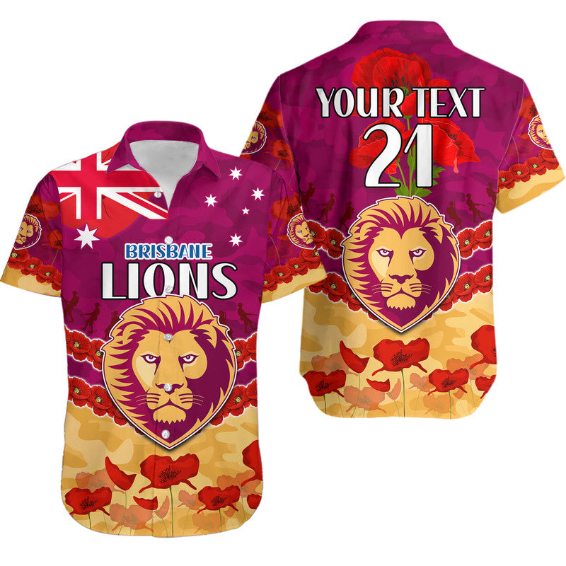 (Custom Personalised) Brisbane Lions Football ANZAC Hawaiian Shirt Lest We Forget LT9