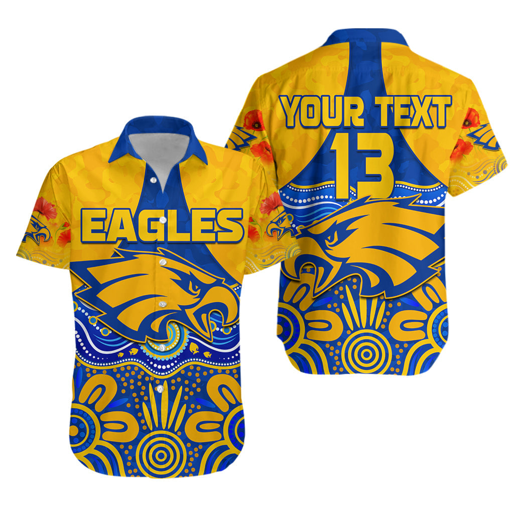 (Custom Text and Number) Eagles ANZAC 2022 Hawaiian Shirt West Coast Aboriginal Remember Them LT13