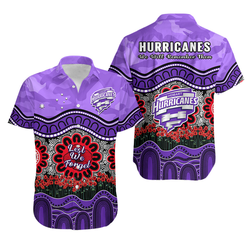 Hurricanes Cricket ANZAC Hawaiian Shirt Hobart Poppy Aboriginal Camouflage LT14