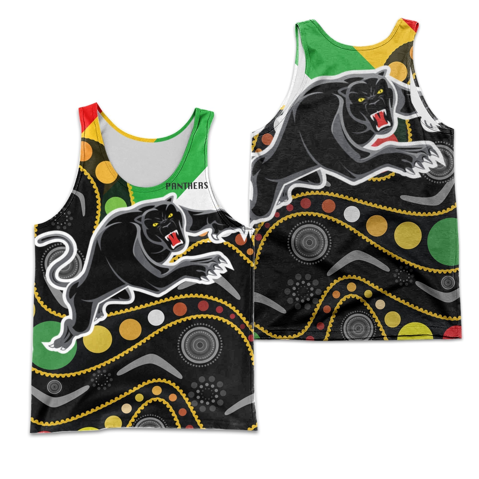 Penrith Panthers Men's Tank Top - Panther With Colors NAIDOC Patterns - LT20